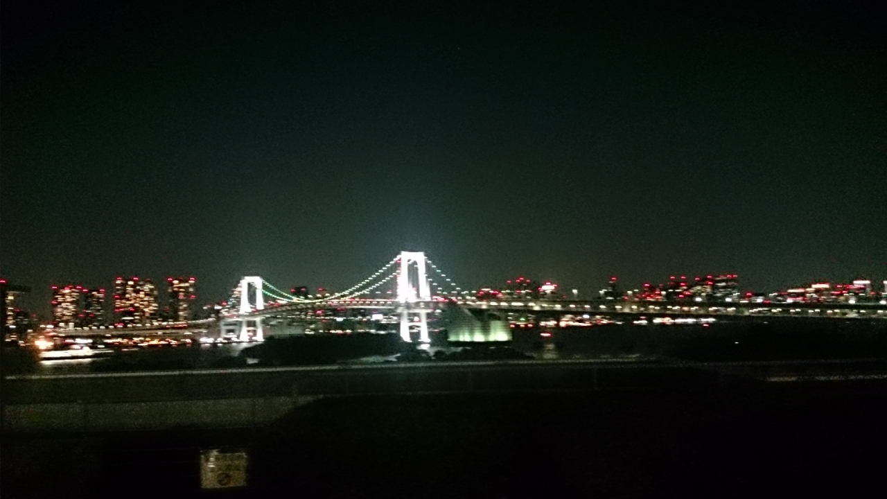 レインボーブリッジ周辺の夜景はいつみてもきれいですね。レインボーのライトアップもキレイですが、シンプルな様子も素敵だと思います。残念ながら、通行してしまうと見えないので、ぜひお台場から眺めてください!