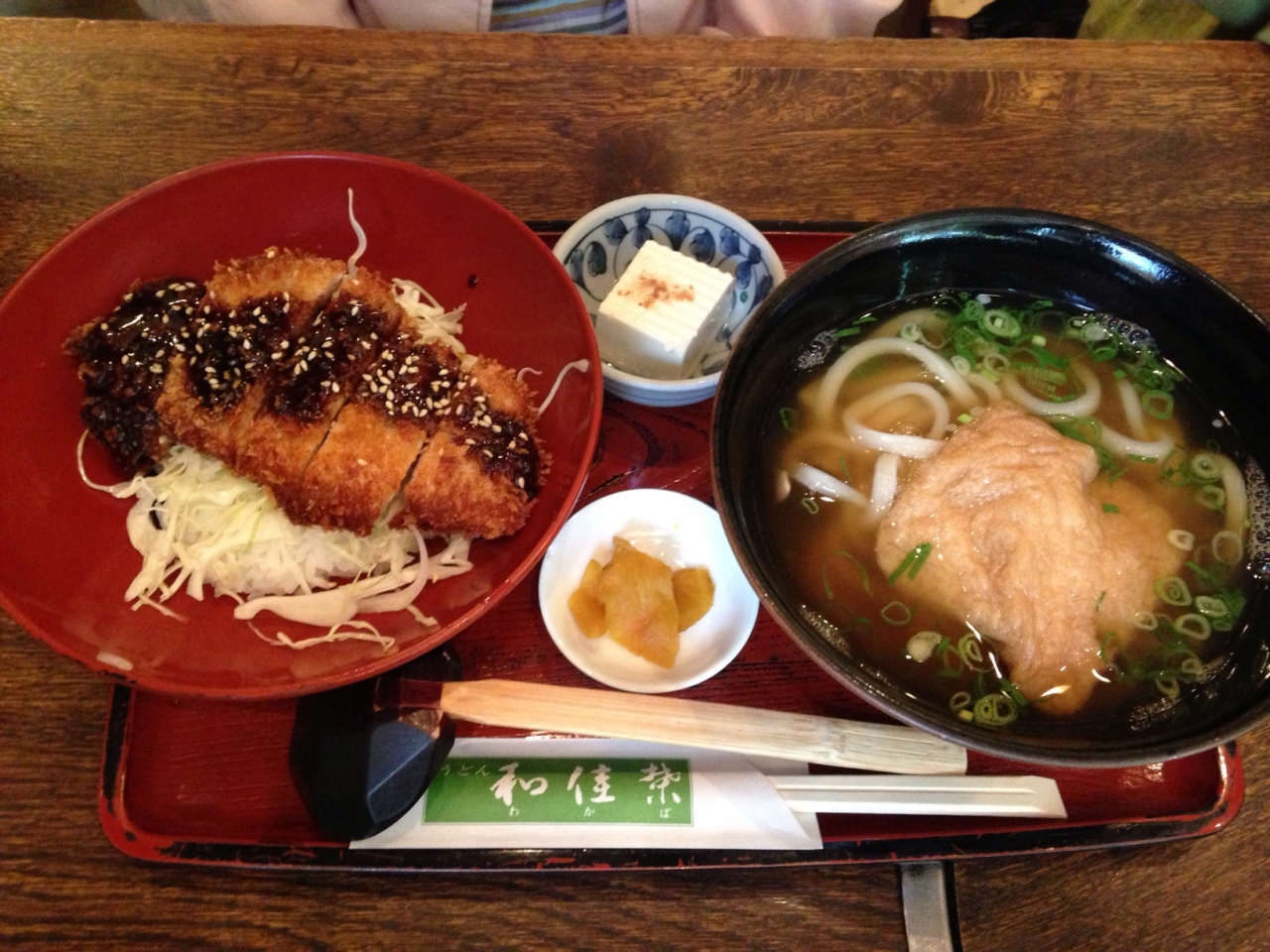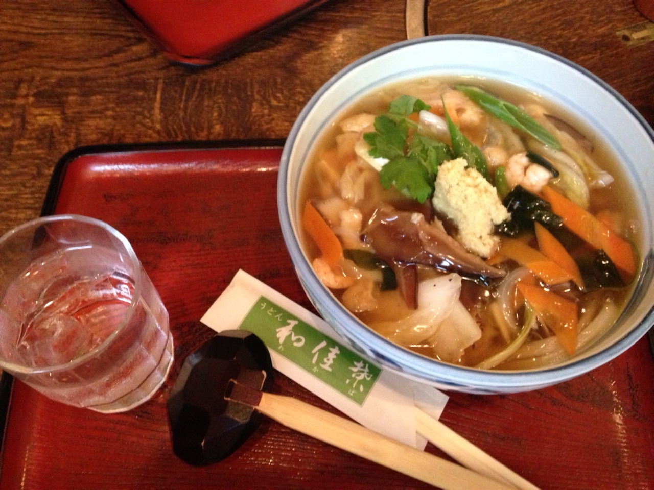 和風ちゃんぽんうどん、ソースかつ丼定食(うどん付き)をオーダーしました。うどんのだしは濃すぎずちょうど良いお味です。ちゃんぽんの方は野菜が10種類くらい入っていて、あんかけになっているので最後まで熱い状態で頂けます。ソースかつ丼の方はカツの下にキャベツが敷いてあり、うどんはきつね、きざみ、わかめ、梅などから選べます。うどんの硬さは讃岐うどんほどは硬くなく美味しかったです。