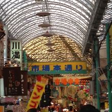 那覇OPA角を入った市場本通り沿いから第一牧志公設市場手前まで、約160メートルにわたって連なる商店街です。以前はお菓子通りとも呼ばれていたそうです。手前のほうはどちらかというとお土産屋さんが多く、奥に行くにしたがって食材屋さんが多い感じです。