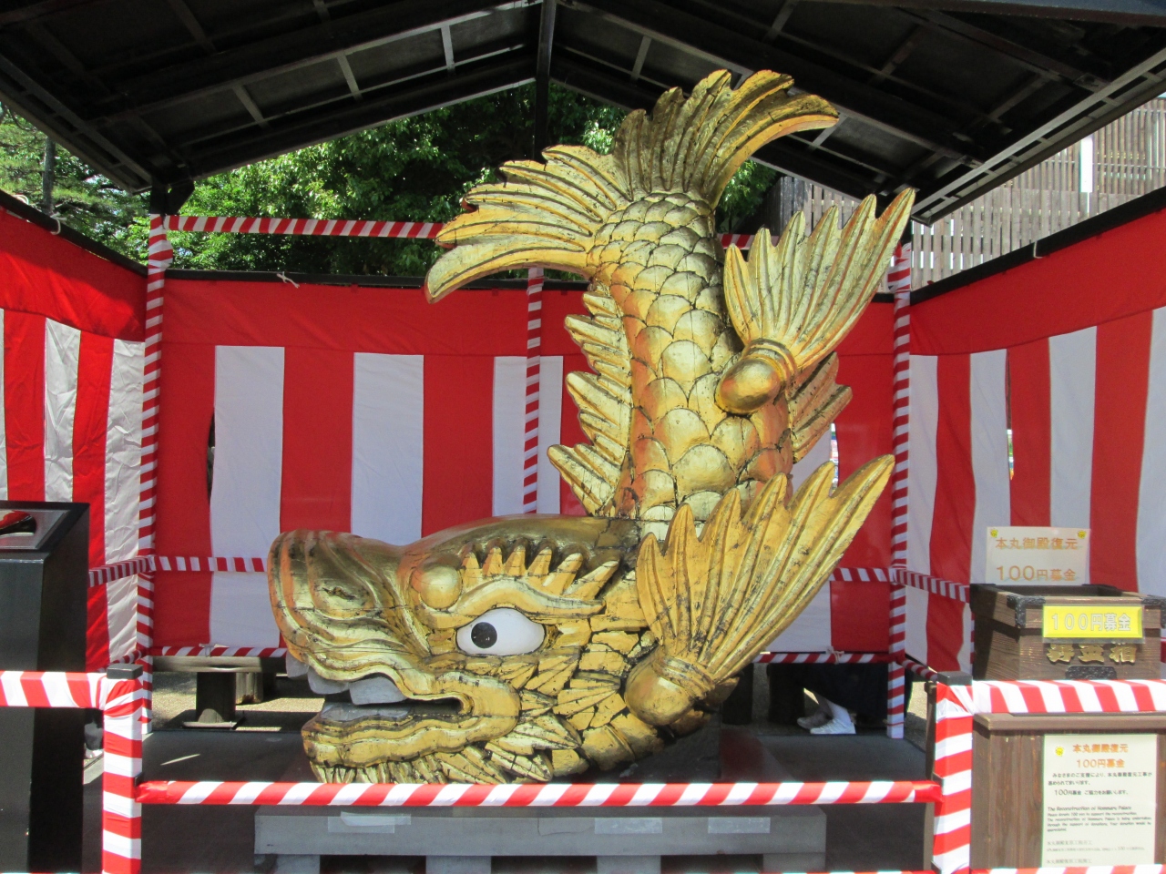 名古屋城の本丸御殿の公開へいってきました。まだ完成まで時間がありますが、黄金に囲まれてきました。名古屋城の武将隊の信長さまや前田慶次さまの案内もあり、とても楽しい。たまたま茶室で黄金の茶釜でのお点前があり、お抹茶をいただいてきました。広い場内の散策はタイムスリップした感じでした。