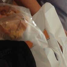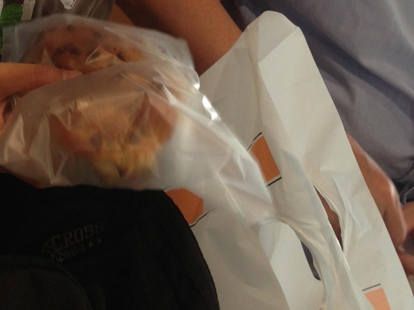 飛行機まで時間がない時、パンを買ってベンチで座って食べました。