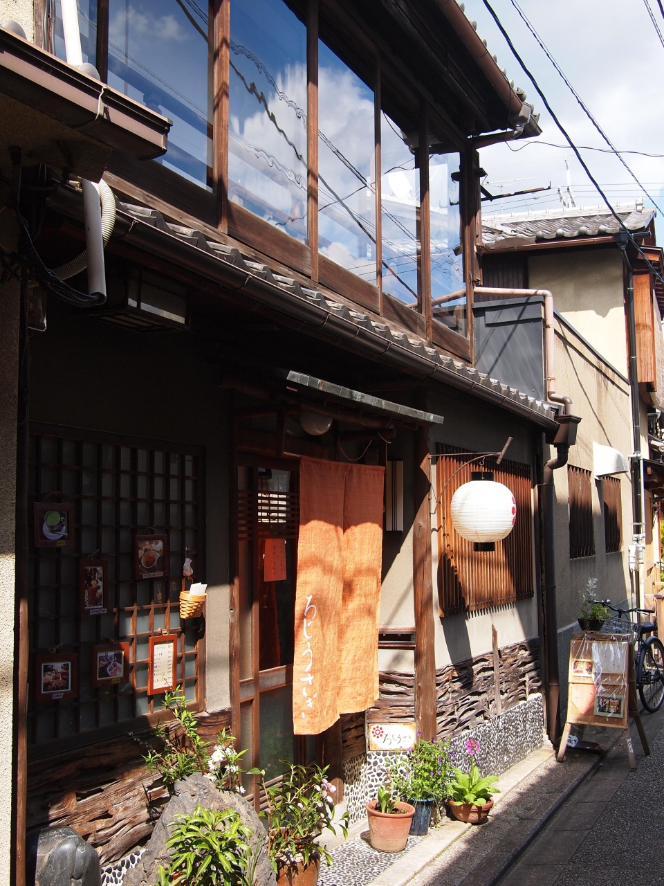 京都祇園の南側、京都ゑびす神社西側の細い路地にある町家カフェ。