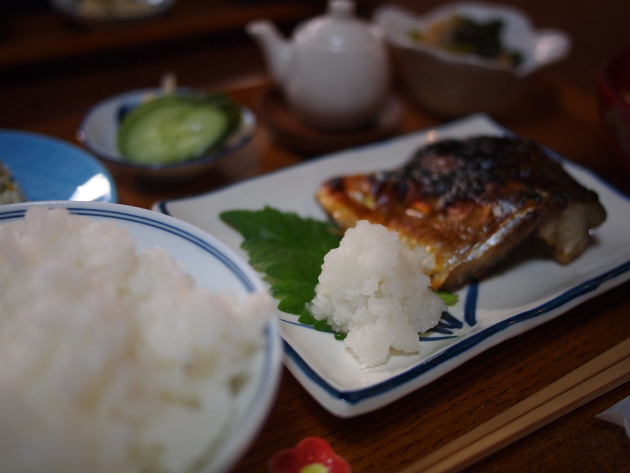 出てきたのは焼きサバ定食で、家庭的な料理です。