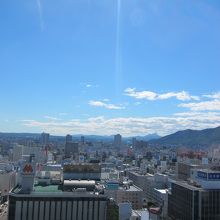 北側はJRタワーが目立ちます。各種ホテルのビル群が立ち並び、奥には樺戸、暑寒別の山々。案内板には日本海の位置が描かれていますが、見た感じでは水平線は確認できませんでした。
