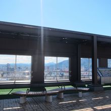 札幌市役所の19階は露天の展望デッキになっています。窓がついた風除けになる壁(わずかに軒も付く)が巡らされ、レストランやトイレなどの設備室を挟んで北側と南側の眺望が利きます。