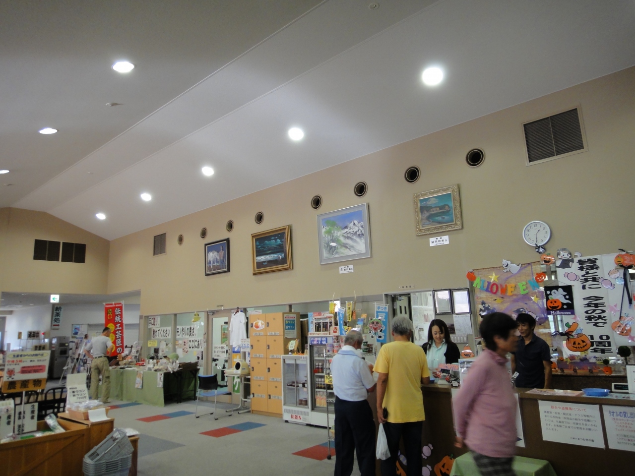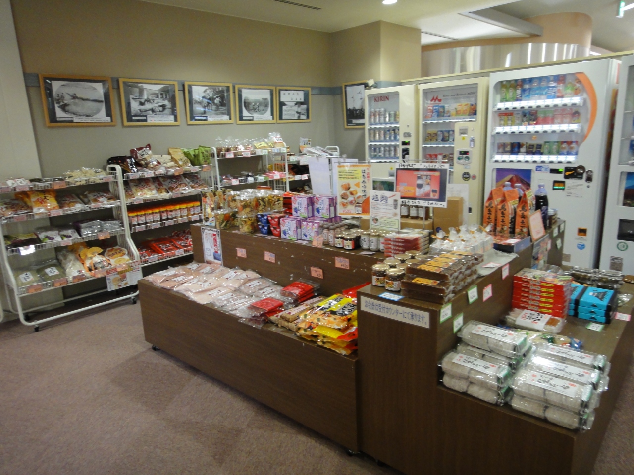 公共の施設なので食堂はないけれど、お土産コーナーがあり、飲み物、アイスなどの自販機が設置されていて便利。地元特産品の直売もあった。