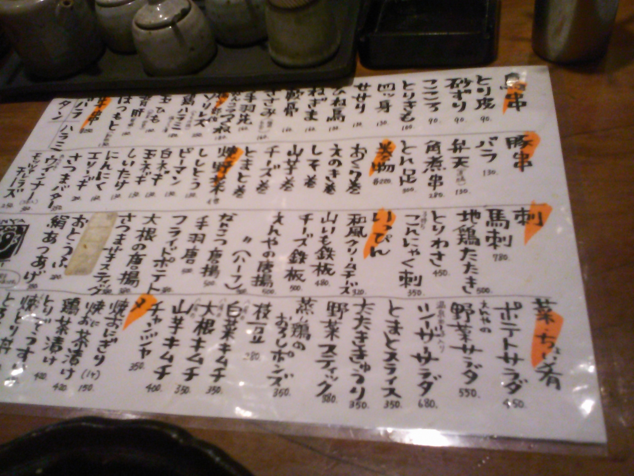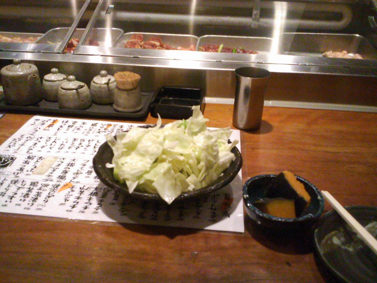 近鉄八尾駅の高架下の焼き鳥屋さんです。人気のお店で、入店まで少し待ちました。立って待っている間にお絞りを持ってきてくれました。店内は仕事帰りのサラリーマンのグループのほか、家族連れや女性のグループも来ていました。なるほど、若い男性スタッフ達がきびきびと立ち働いて、感じの良いお店です。おいしい焼き鳥に生ビールで一日の疲れも忘れました。キャベツのお替わり、そして最後にアイスクリームが出たのが嬉しかったです。
