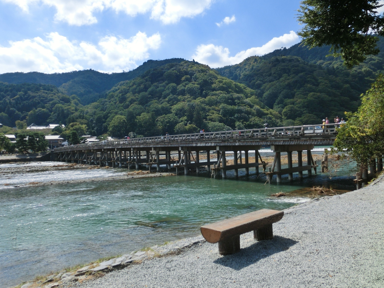台風の大雨でどうなったかと心配していましたがまったく問題なし。観光客もたくさん。渡月橋から見える桂川は大変穏やかでした。ただ、台風の痕跡の斜めになった木などもたくさんありました。嵐山のシンボル。大切にしましょう。
