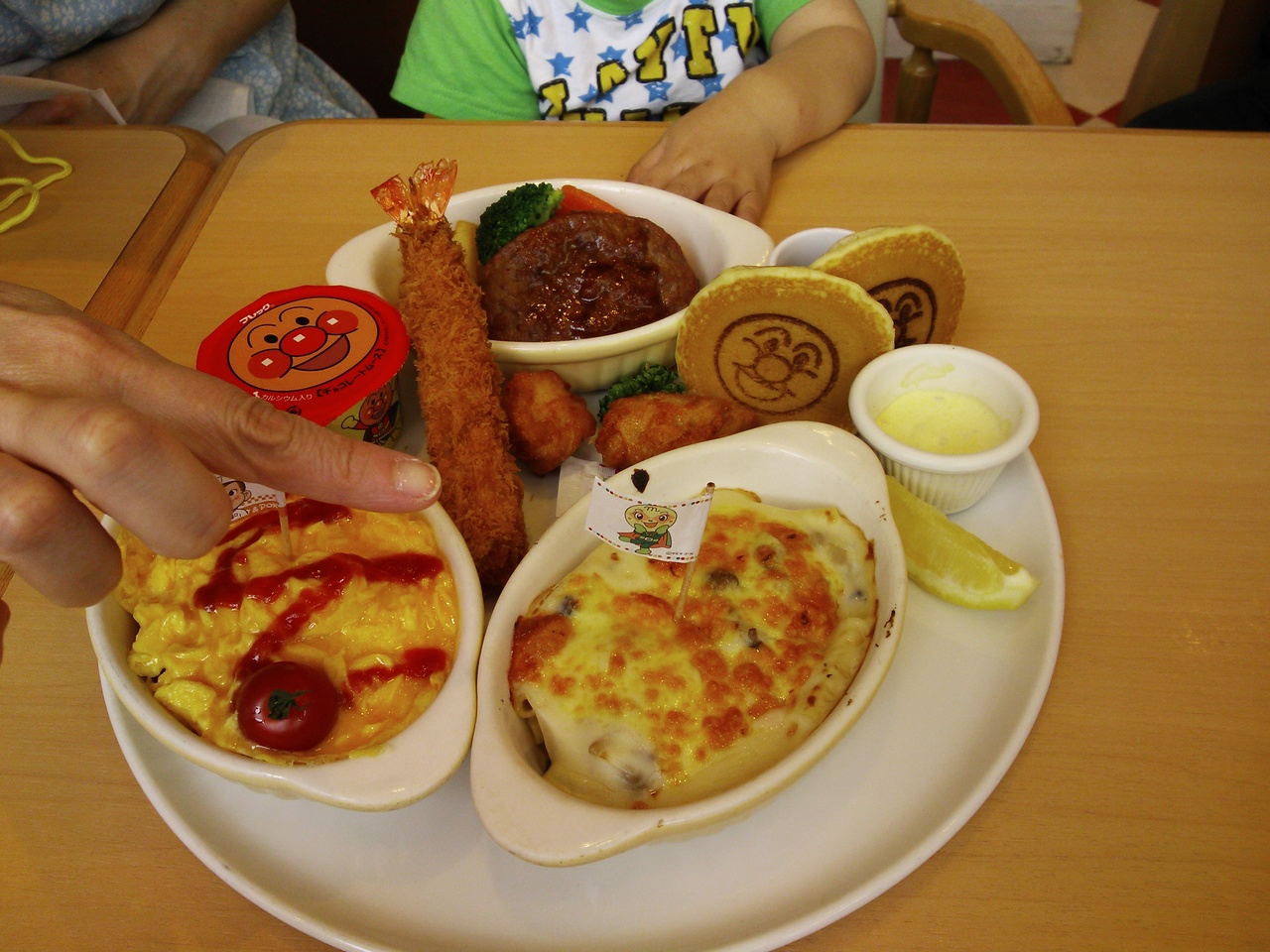 一階のパン屋さんにはキャラクターの顔のパンがたくさんあり、楽しめます。