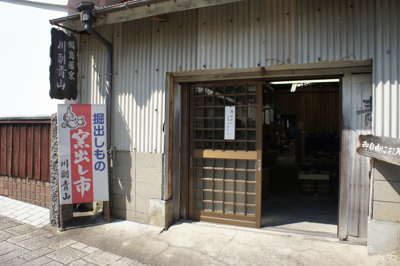 川副青山窯は、大川内山のなかほど。変な話、本宅は石垣に囲まれて立派なのですが、売り場はちょっと貧相でしょう。それに、たまたまかもしれませんが、バーゲンセールのようなものをやっていて、入るとかごに雑多な商品が盛られていて、見る気をなくしてしましました。そんな窯ではないと思うのですが、変な印象になってしまいました。