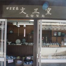文三窯は、大川内山の中ほど。この辺りは、小さな窯元がたくさんあって、ここもそんな中の一つ。外から店内を覗くと、もうだいたいが分かってしまうような感じです。店先に、ちょっと安売りの商品を置いてみたりしていますが、逆に元気のない感じがしてしまうかもしれません。