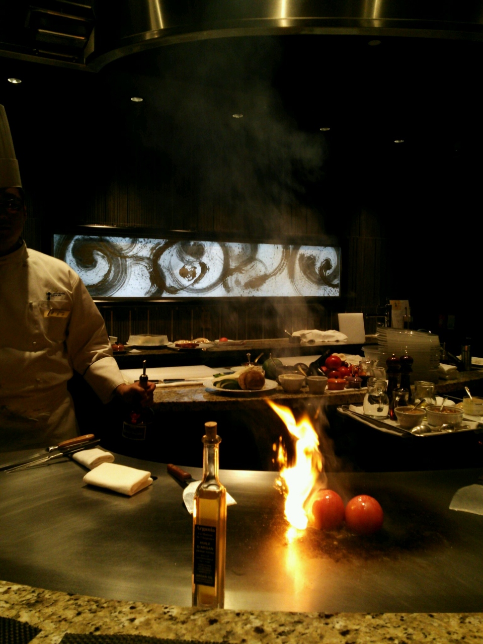 ワンドリンクが付いたランチのプランで訪れました。ラウンジの中を奥まで行ったところに、鉄板焼き匠はあります。個室もあったようです。私達が着席した鉄板は8人ぐらいが着席できる席でした。シェフがホスピタリティにあふれていて、名刺をくださったり、炎があがるタイミングを教えてくれて撮影させてくれたり、楽しめました。