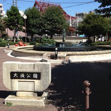 公園は円形の小さな物ですが、中央に鯉等も泳ぐ噴水があり、