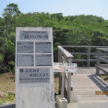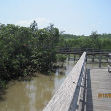 木の板の道からマングローブの林が楽しめる散歩コースです