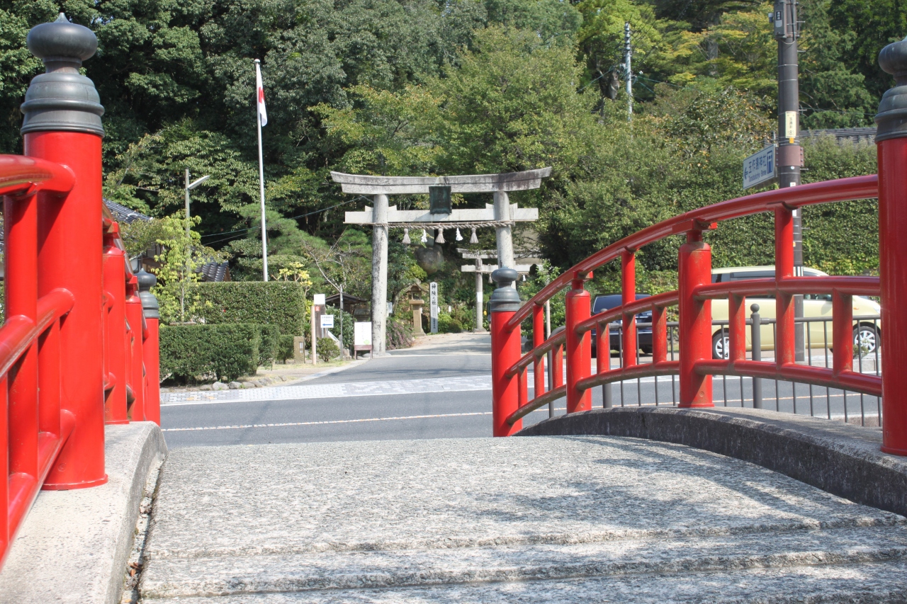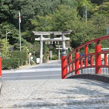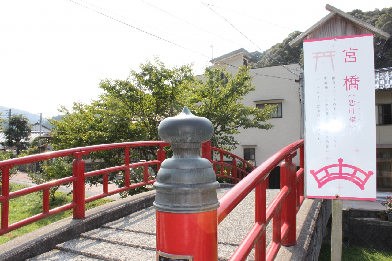 玉作湯神社の鳥居へと続く橋で、宮橋と言い、別名「恋叶橋」と言われています。