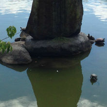 大きな鯉やカメがたくさんいてました。