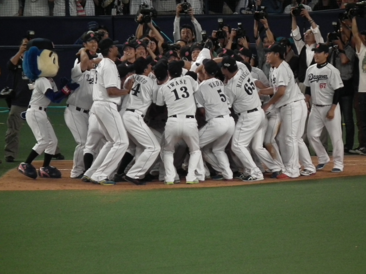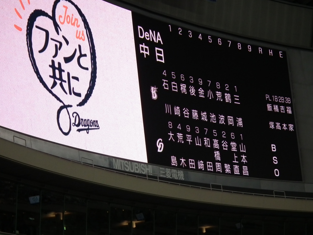 ナゴヤドーム2013年公式戦のDeNAとの最終戦が山崎武司選手の引退試合となりました。4番でフル出場の山崎選手にファンの暖かい声援が飛び交うなか、東北から駆け付けたファンの声援が感動的でした。山崎選手に対する『ありがとう』の大弾幕、それに対して山崎選手の東北が自分を育ててくれた『ありがとう』の感謝の言葉、これから指導者としての道を進むと思いますが、『山崎監督を観てみたい』そんな気持ちになりました。