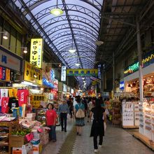 市場本通りは、国際通りと直角に交わるアーケード商店街で、第一牧志公設市場までの200メートル弱の商店街です。