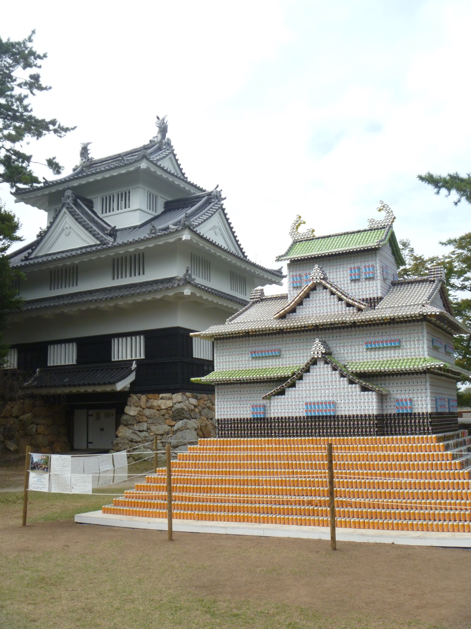 併せて、最近ギネスに登録された、世界一たくさんの空き缶を使って作られた造形物の吉田城を見てきました。先日の台風にも耐えただけあり、しっかりとした造りでした。