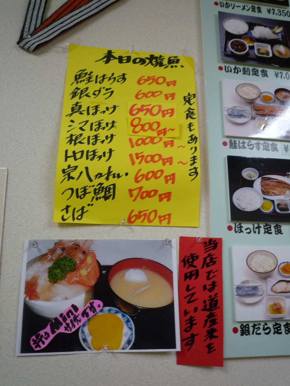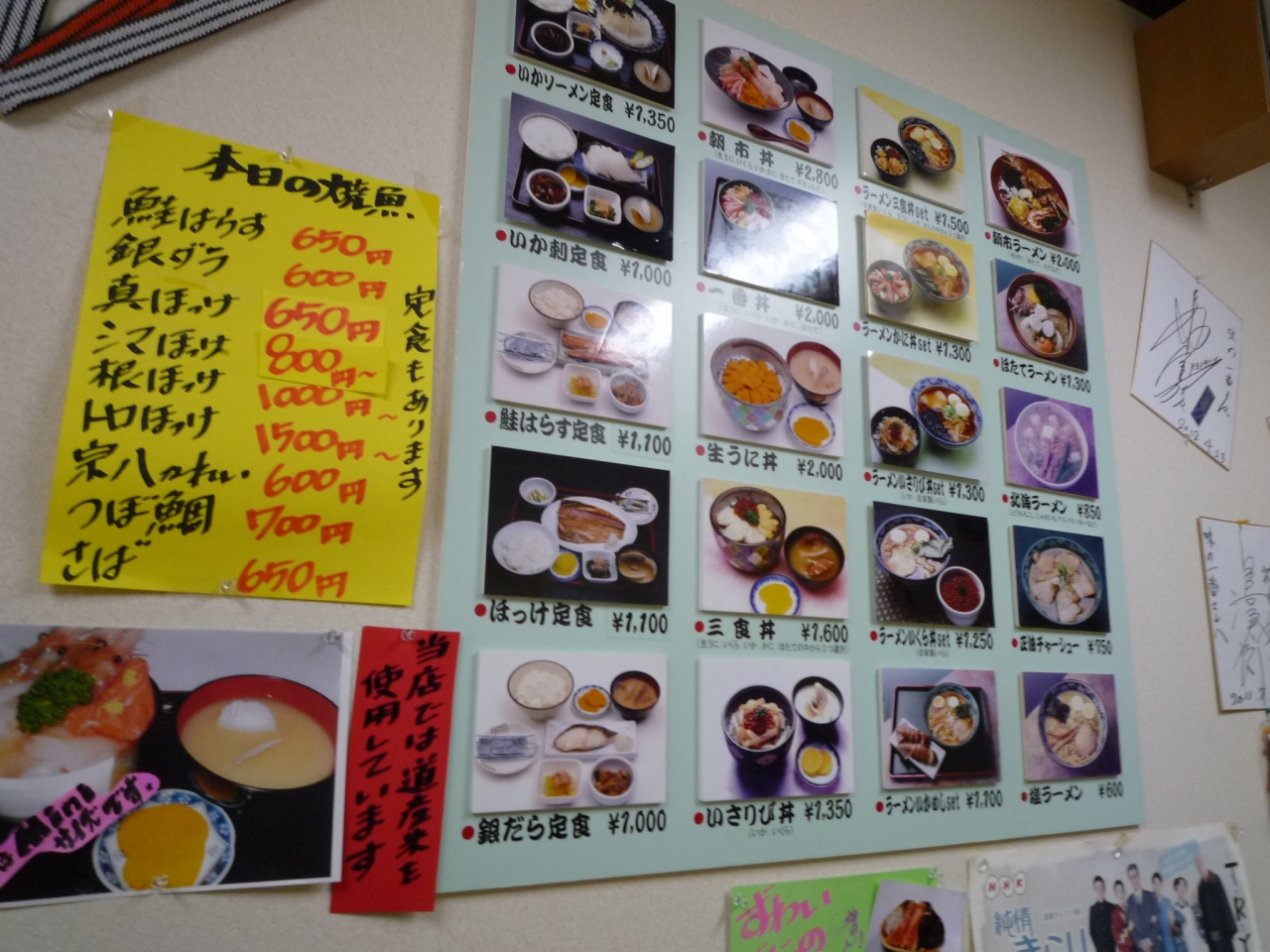 いつも朝食は、ホテルで食べるが、ここ朝市の横なので、聞いてみたところ1500円で、6つの食堂が選べ、かつメニューもいろいろあるので、楽しみながら選んだ。気さくな親父さんで、お土産の場所など聞いていろいろアドバイスがもらえた。こんな楽しみ方もあります。