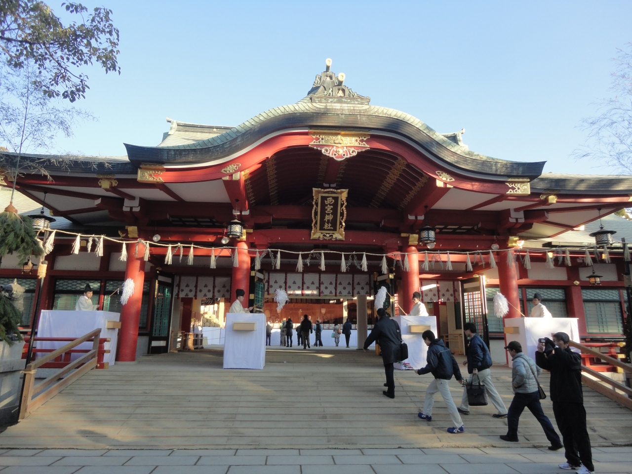 阪神西宮駅より徒歩10分。毎年1月にある十日えびすには満員電車のような強烈な人混みで賑わう。当然 押しくらまんじゅう状態で小さな子供連れはやや危険が伴なうほど。だが朝の開門時間直後は人もまばらでスイスイと拝観が可能なのでオススメである。