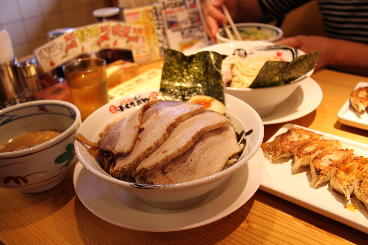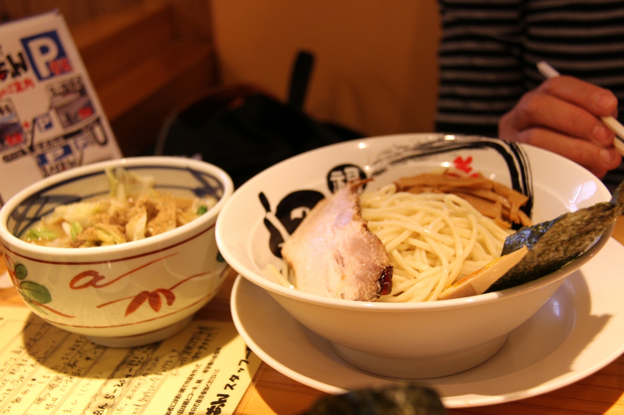 つけ麺を注文すると大盛りが無料となりますが、大食漢の人にはちょうどよいでしょう。