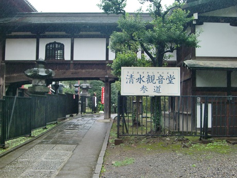 お堂の舞台から不忍池が眺められますが、当日はあいにくの雨で残念でした。