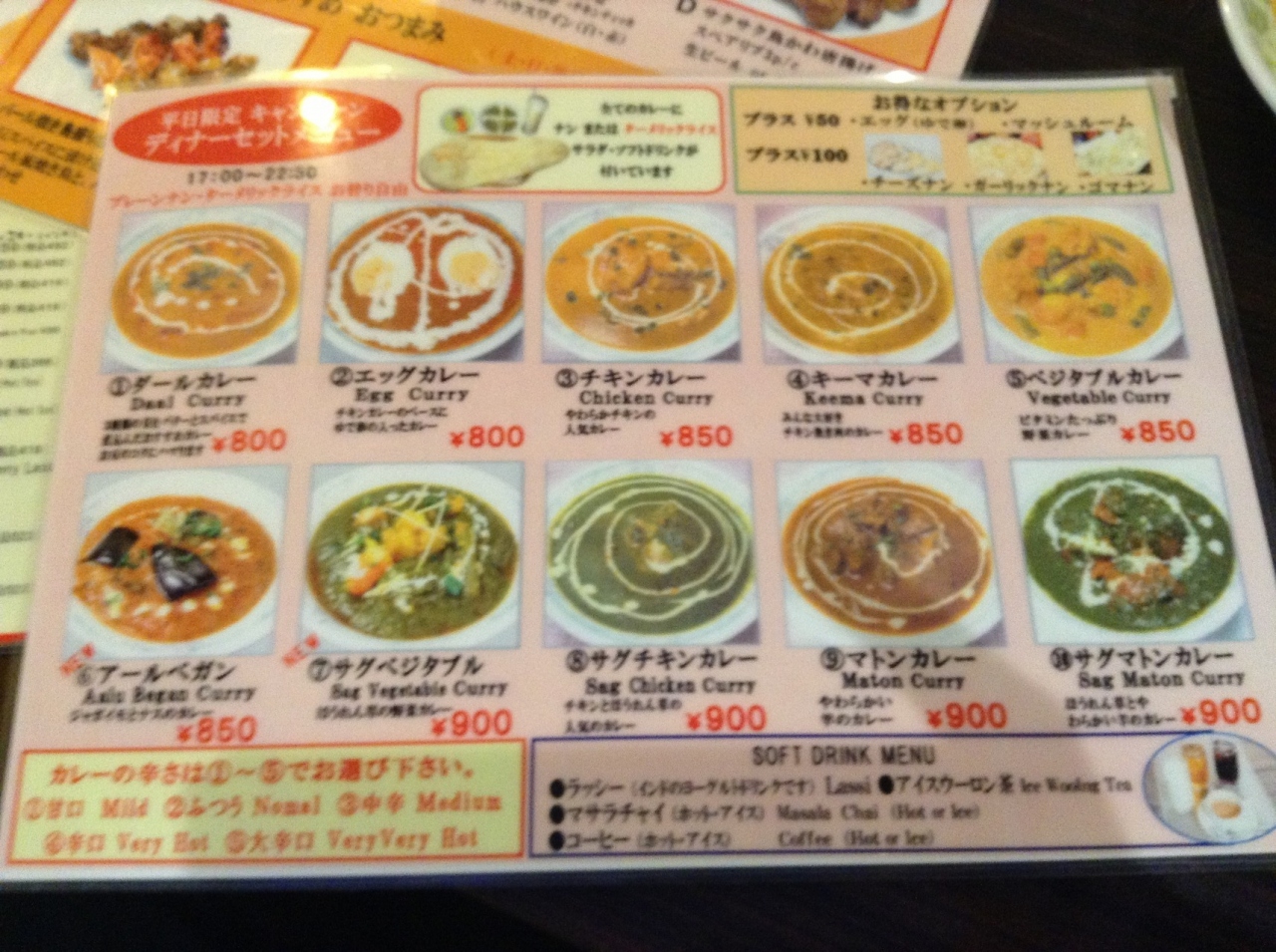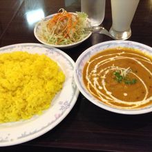 ダルカレー、ライスorナン、サラダ、ラッシーのディナーセット800円を注文。ダルカレーが豆の甘みがほのかに感じられ、サフランライスもちょうど良い炊き具合でした。美味しかったです。