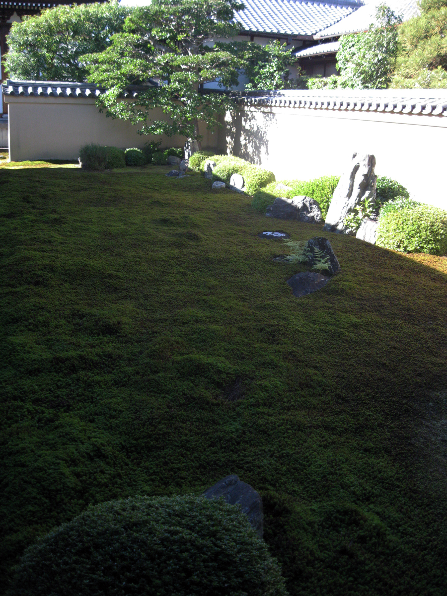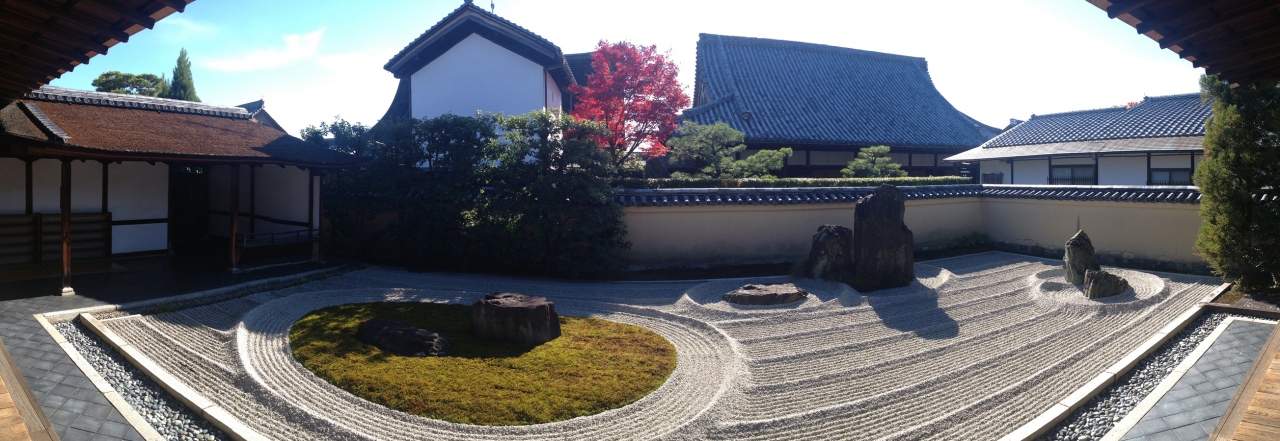 方丈前庭の「一枝坦」は不老長寿の吉祥の島である蓬莱山を表しており、阿吽の石庭の「滹沱底(こだてい)」も趣がありました。