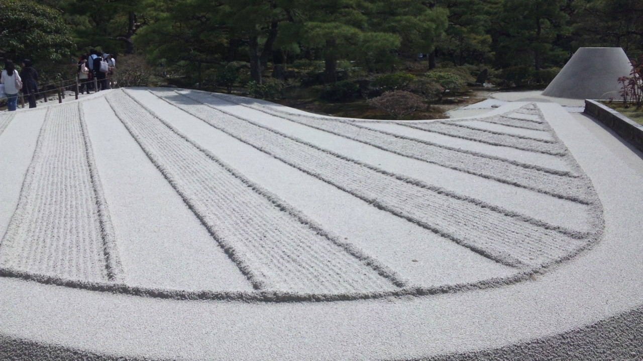 京都旅行で寺回りをした際、銀閣寺にもよりました。金閣寺と比べ、派手さはありませんでしたが、石庭はとても規則的に整備されており、綺麗でした。私が言ったころは丁度銀閣寺の改修工事を行っており、貴重なシーンを見れました。