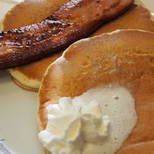 ベーコンは分厚く塩っぽくて、シロップとの相性抜群でした。