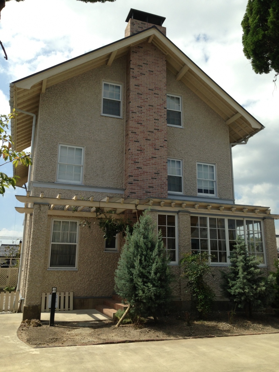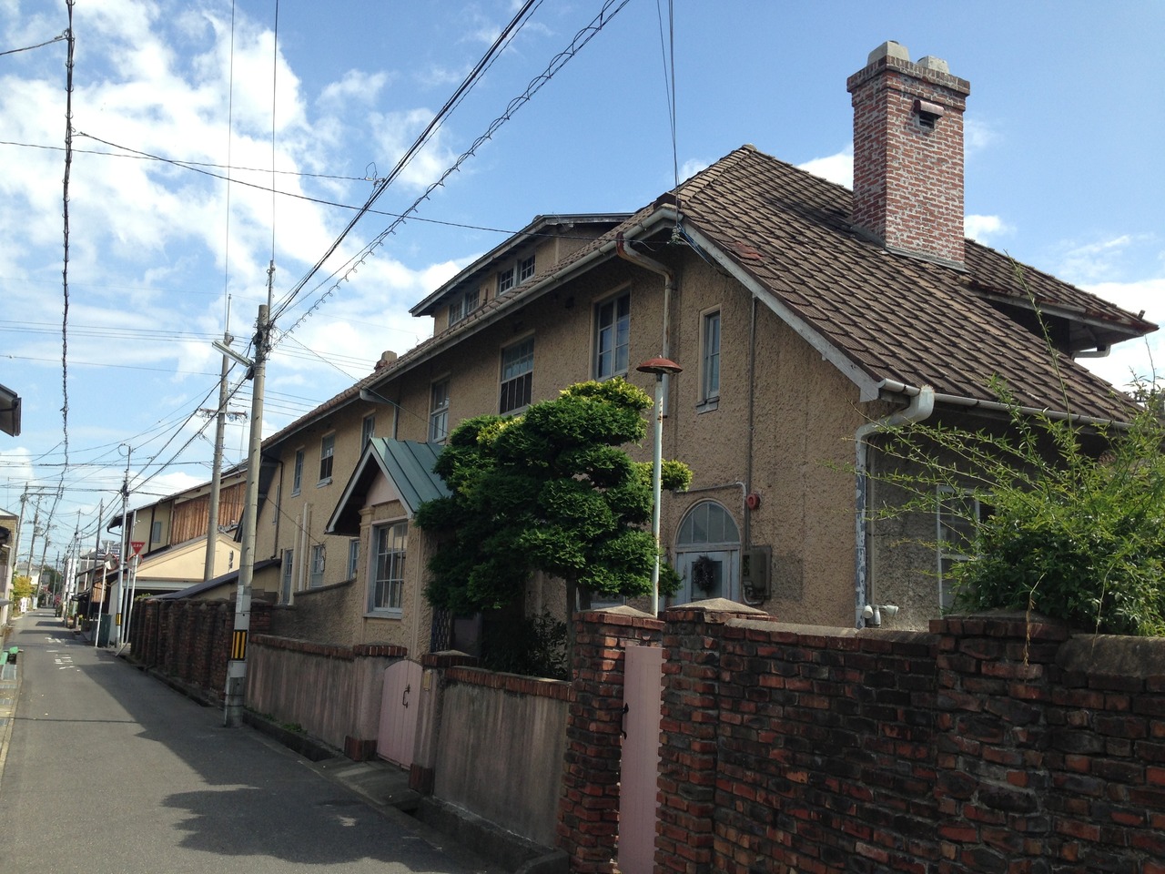特徴的なレンガ塀に囲まれた雰囲気のあるヴォーリズ建築の住宅街である。