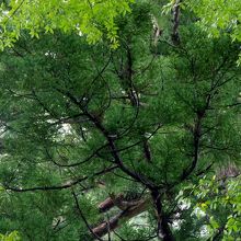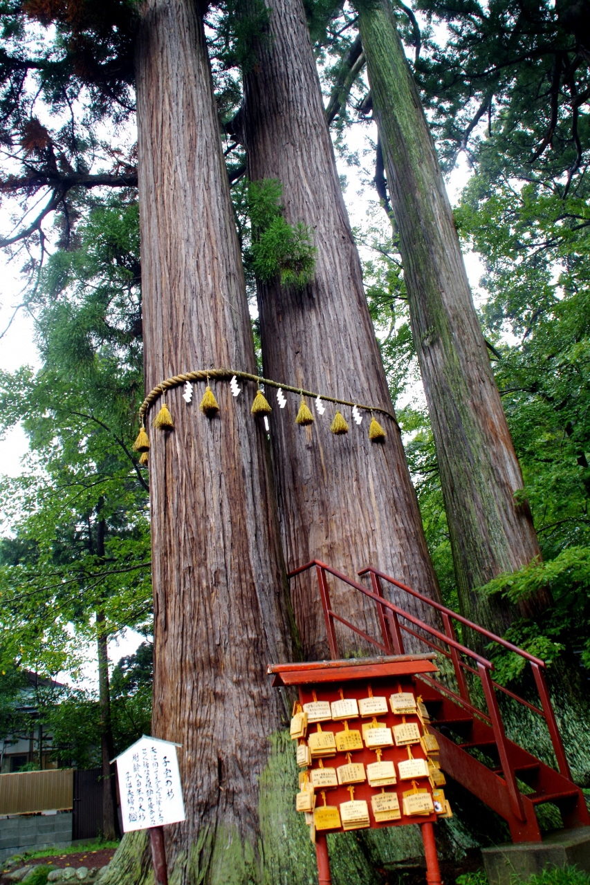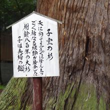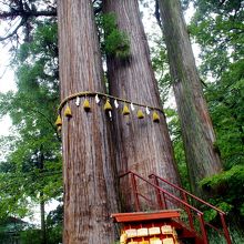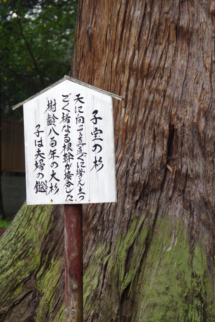 階段を上がると同じ根元から2本、寄り添って立っている樹齢800年の「子宝の杉」が目に入ってくるでしょう。