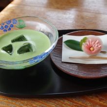 ひんやりとほろ苦くてとっても美味しかったです。付いてくるねりきりのお菓子もさっぱりしてて、目にも美味しく綺麗でした。