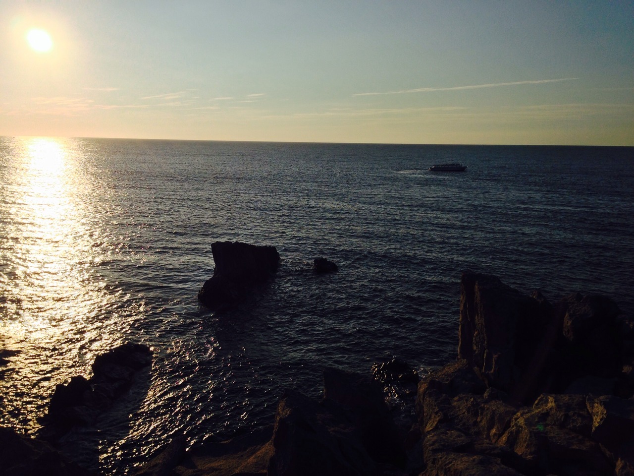 有料500円の駐車場に駐車してお土産や食堂の並ぶ道を進むと、急に視界が開けて断崖絶壁の東尋坊が見えます。歩きやすい靴で行けば崖の隅々まで散策することができ、断崖絶壁を歩くスリルを楽しめます。