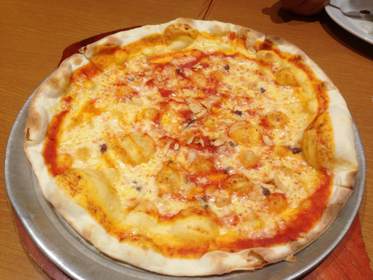 グランデュオ立川のレストランフロアに比較的最近出来たお店で、先日初めて行ってみました。注文したのは、渡り蟹のトマトクリームパスタ、アンチョビとガーリックのピザ、シーザーサラダ、です。ピザは薄い生地でサイズは大きく、サラダはハーフサイズでしたが量が多く、サラダの上のチーズが独特の下ろし方で、これが一番いいな、と思いました。(一番平凡なのはパスタでした。)値段はピザが980円、パスタが1400円くらい、サラダは600円くらいでした。可もなく不可もない、という感じではありました。