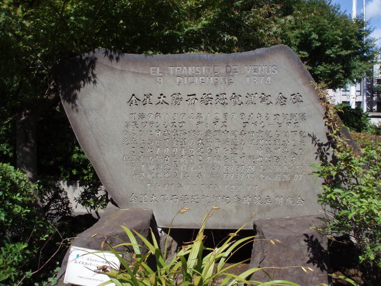 JR根岸線桜木町から紅葉坂のゆるやかな坂を登り県立青少年センター入口に金星太陽面経過観測記念碑があります。記念碑には明治7年(1874年)12月9日メキシコ観測隊ならびに日本水路寮の海軍中尉吉田重親らは下記地点において金星の太陽面経過の観測に成功した。記してあります。金星観測絶好の地の一つとして極東の開国後間もない横浜が観測地として選ばれたのだから凄いことです。