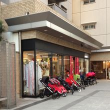 オリジナルベビーカ『AirBuggy』をはじめたくさんのベビーカーが展示販売されていました。