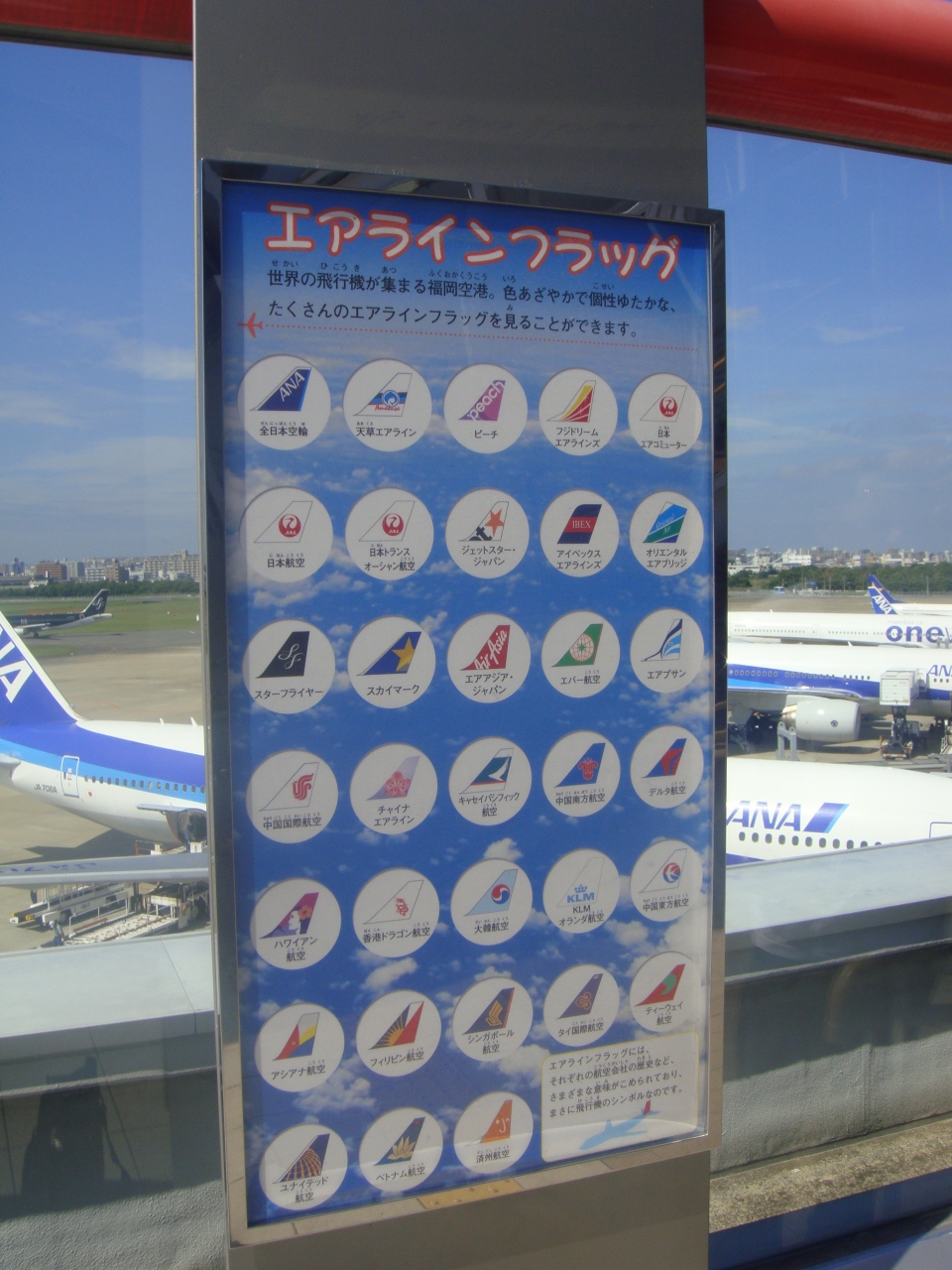 福岡空港は何度も利用していますが、搭乗まで時間に余裕がありましたので、第二ターミナルビルの屋上にある展望デッキに行ってきました。もちろん入場は無料、福岡空港は国際空港ですから韓国、台湾、中国などの航空機も見られます。また3階部分には福岡空港の歴史などがわかるパネルや航空機の模型などが展示しております。