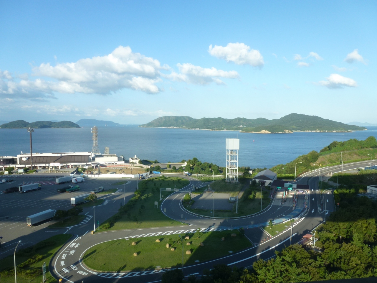 いつも車で瀬戸大橋を渡るとき、立ち寄る与島サービスエリアですが今回は初めて上からつまり、列車のなかから眺めました。けっこう大きな島で、パーキングと反対側は日常生活が営まれていました。車だと真下が見えないのですが、列車だと真下の海が見えます。列車で渡るのも楽しいかもしれません。