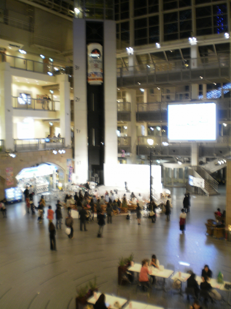 札幌の大型ショッピングモールのサッポロファクトリーに、夕方食事にいきました。 ここは、大きなガラスのアトリウムがあって、そこにステージがあって若者がギターをひいてミニコンサートをやっていました。 外に出ると煙突のある広場には電飾がきれいで昼間とは違う雰囲気でした。