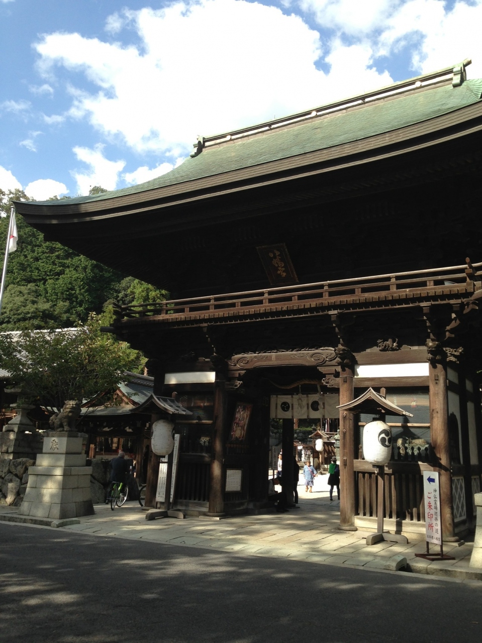 鳥居をくぐり 左右にクラブハリエ たねや のある参道を進むと 正面ではなく右手にある。