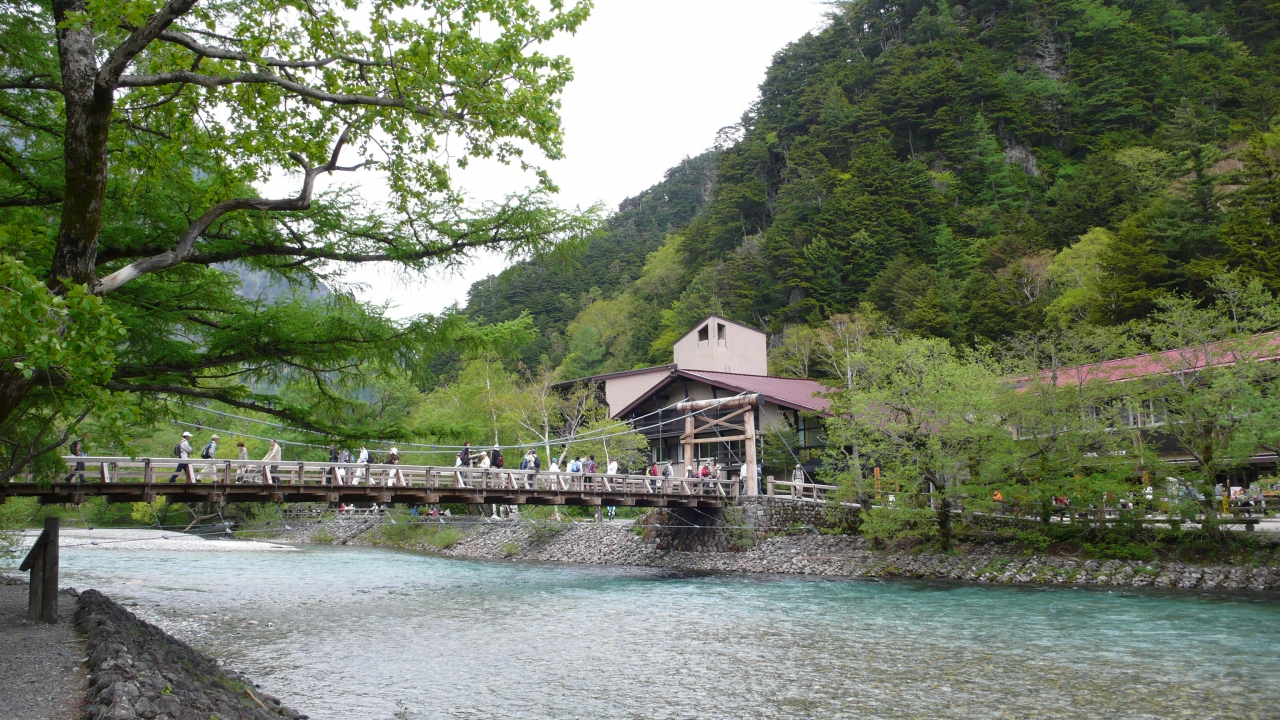 上高地の写真を見ると必ず載ってるスポットです。やはりいつも人が多い。上高地の景色は感動的で何度でも訪れたうなります。ただ、このあたりは人が多くて騒がしいですね。できるなら、上高地のホテルに泊まって早朝散策すれば感動的だと思います。