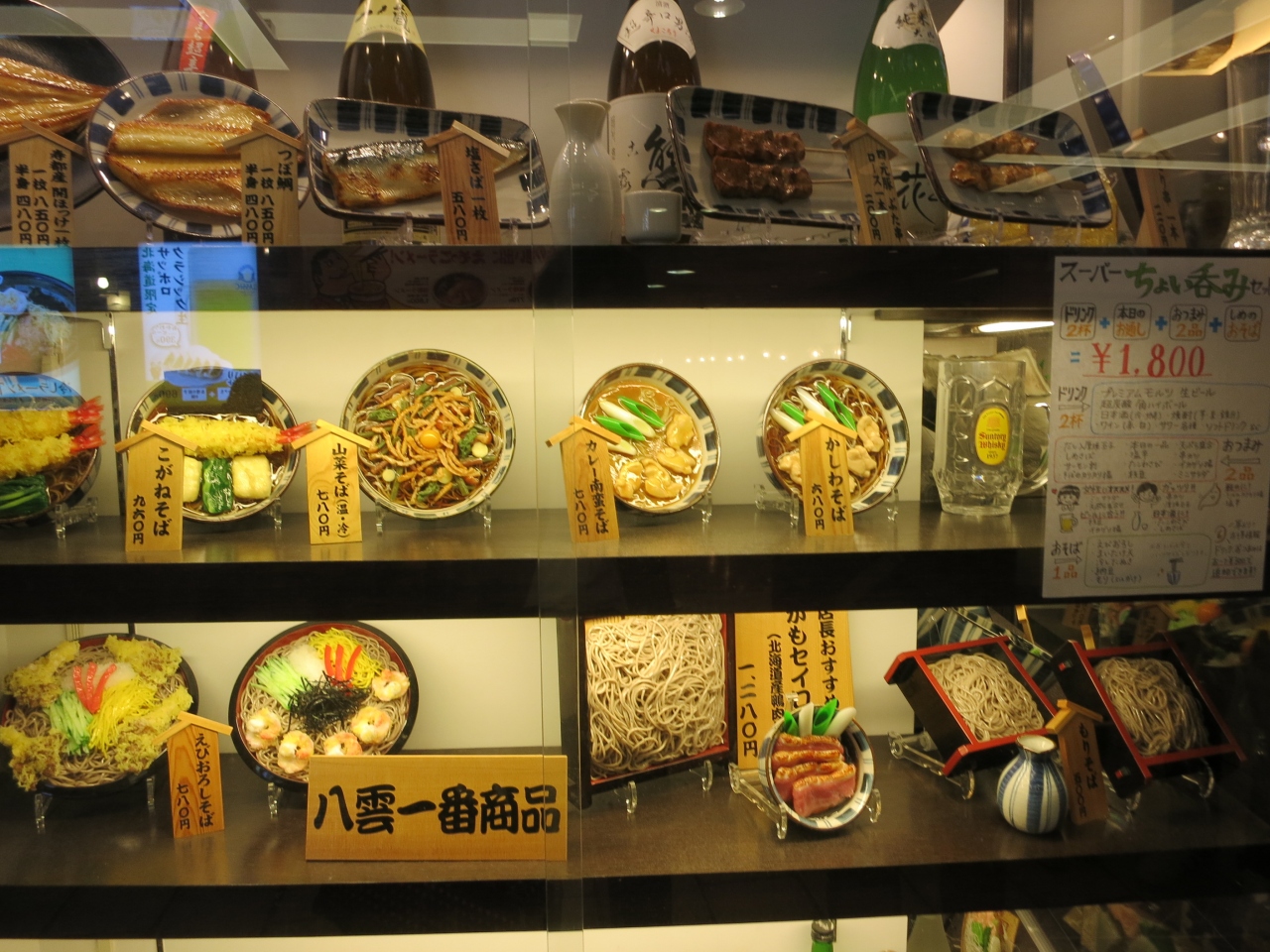 2012年より居酒屋として、お酒も扱うようになったそうです。改装して「そばとお酒 八雲」となっています。梅酒の種類が4種類ほどあり、他の居酒屋よりも少し多めなのかなと思いました。その他に「まるで梅酒なノンアルコール」というのもあり、ロック・ソーダ割りで注文できます。
