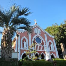 なお、教会の正面はやや東を向いているせいか、午後の光では影になってしまいます。早めの時間帯の方か見栄えが良いです。その代わりといっては何ですが、内部は午後の方が日差しが入りやすく、ステンドグラスがきれいに輝きます。
