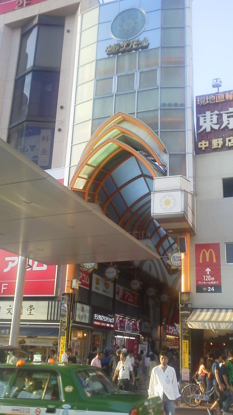 中野駅北側(サンプラザの横側)にまさに駅正面にここの入り口があるのがここ「中野サンモール商店街」。ここは、中野駅北口からまっすぐとつづくアーケードで”中野ブロードウェイ”まで、いろんなお店があります。ここのアーケードには非常に多彩なお店があり、とても活気があるので、この商店街を歩くだけでも何か楽しくなるような感じですね。ほとんどの買い物などはこのエリアでまかないますね。ブロードウェイに行くなら必然的にここを通りますが。