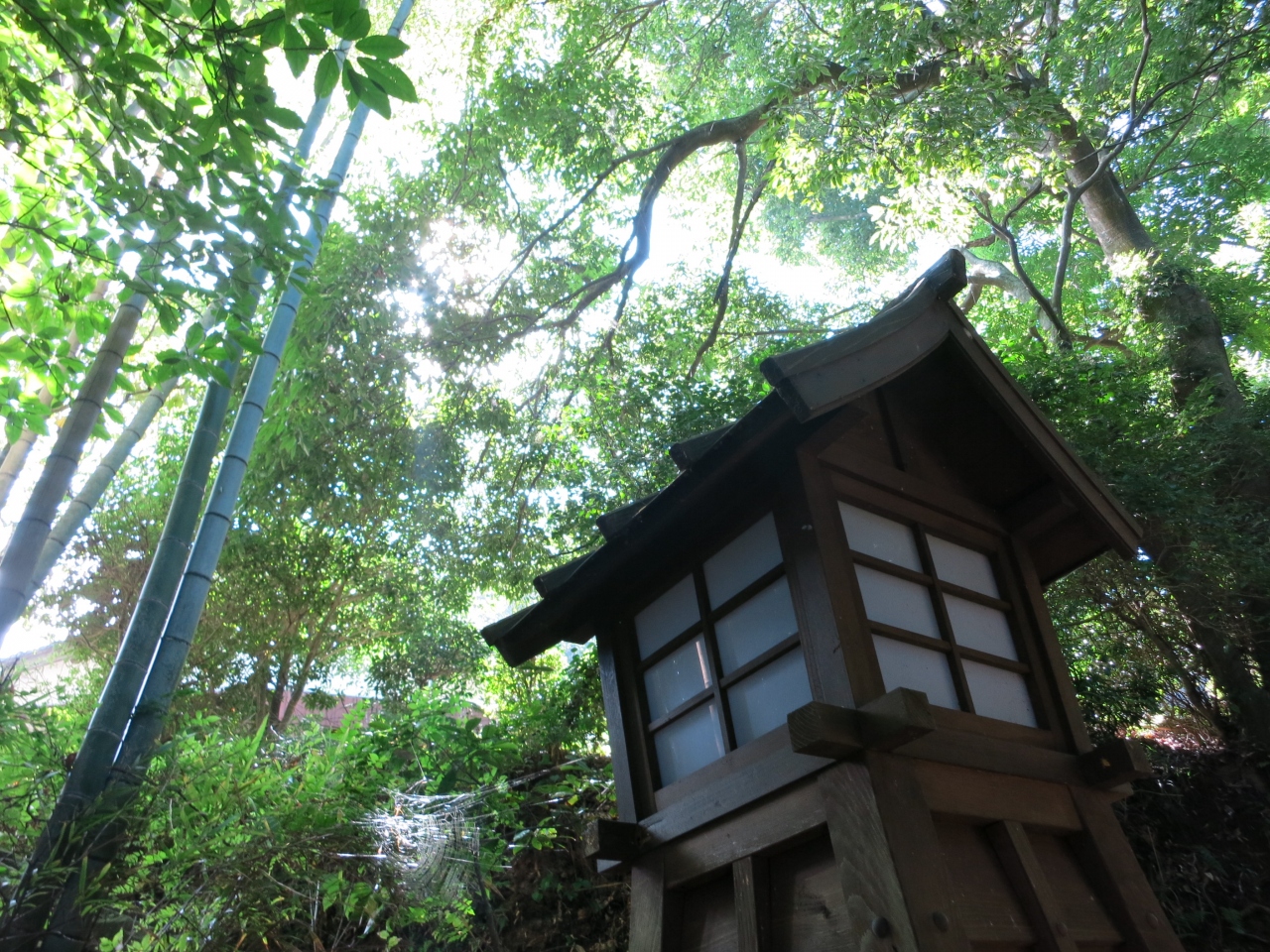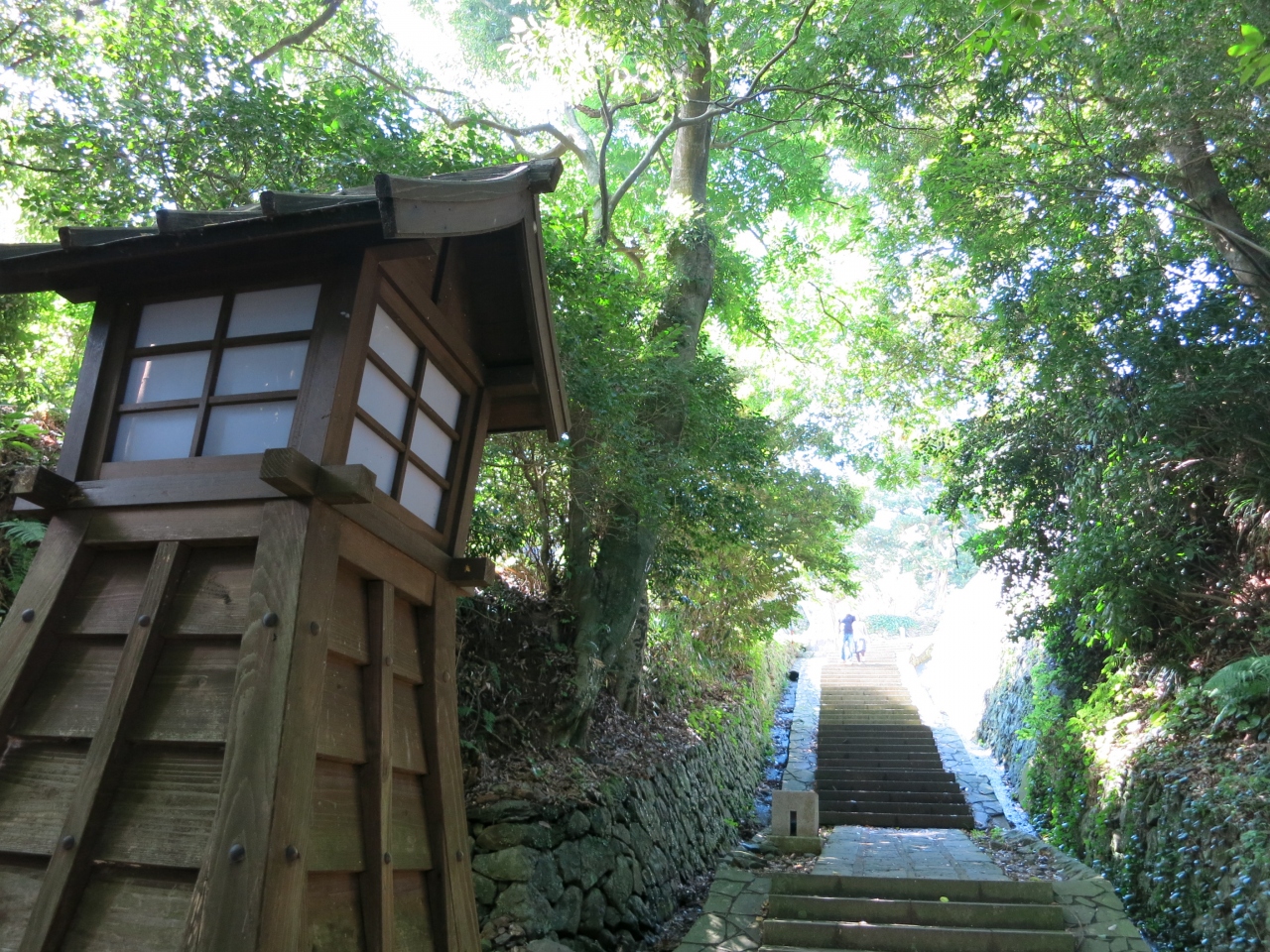 坂は石畳や石造りの階段ですが、白い漆喰の土塀や林に囲まれ陰になっています。上の方は竹林に囲まれ、石段も滑りやすくなっていました。行った時には湿っぽい場所を好むヘビに出くわしました。