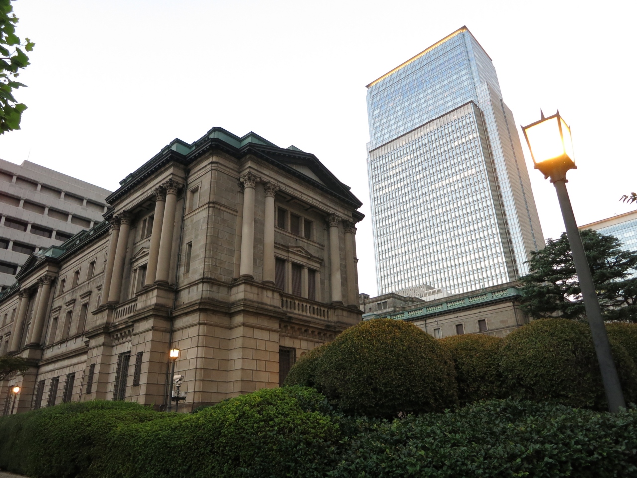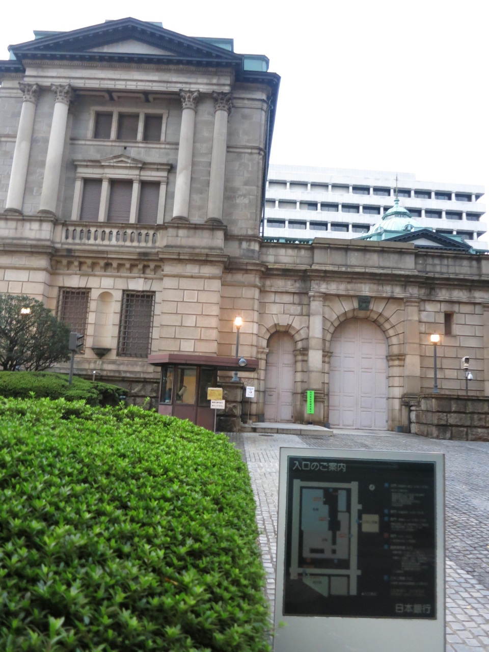 以前からマンダリンホテル、三越本店の裏側に、日本銀行本店本館があるのは気になっていたのですが、今回初めて寄ってみました。正面からの眺めは伊藤博文の旧千円札に描かれた建物そのものです。東京駅を設計した辰野金吾の設計らしく重厚感がある建物で歴史を感じさせます。平日は見学できるようですが、土曜だったので見られませんでした。