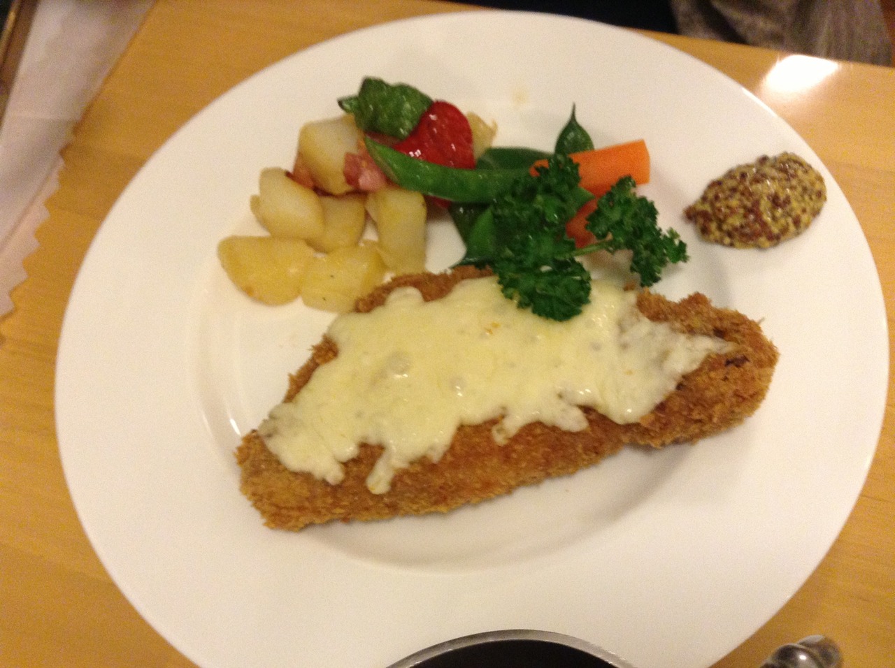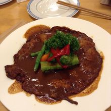 ディナーは、コースだと2800円からです。今回は、家族でアラカルトでハンバーグ、ポークピカタ、ポークカツ(1200円)を注文しましたが、ドミグラスソースでの味付けのため同じような味がし、単調な印象です。