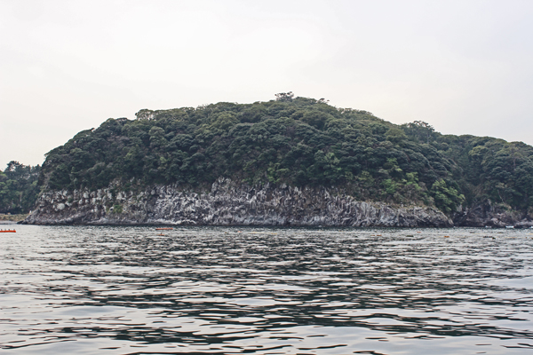 2歳の子どもを連れていたので、岬の中を歩くのは断念して、遊覧船に乗りました。漁協のところから出て、三ツ石のあたりまで行って戻ります。海から見るとうっそうとした森がみごとで、魚つき保安林と呼ばれて、魚の栄養を森が与えているということで、うまい魚が多いということです。